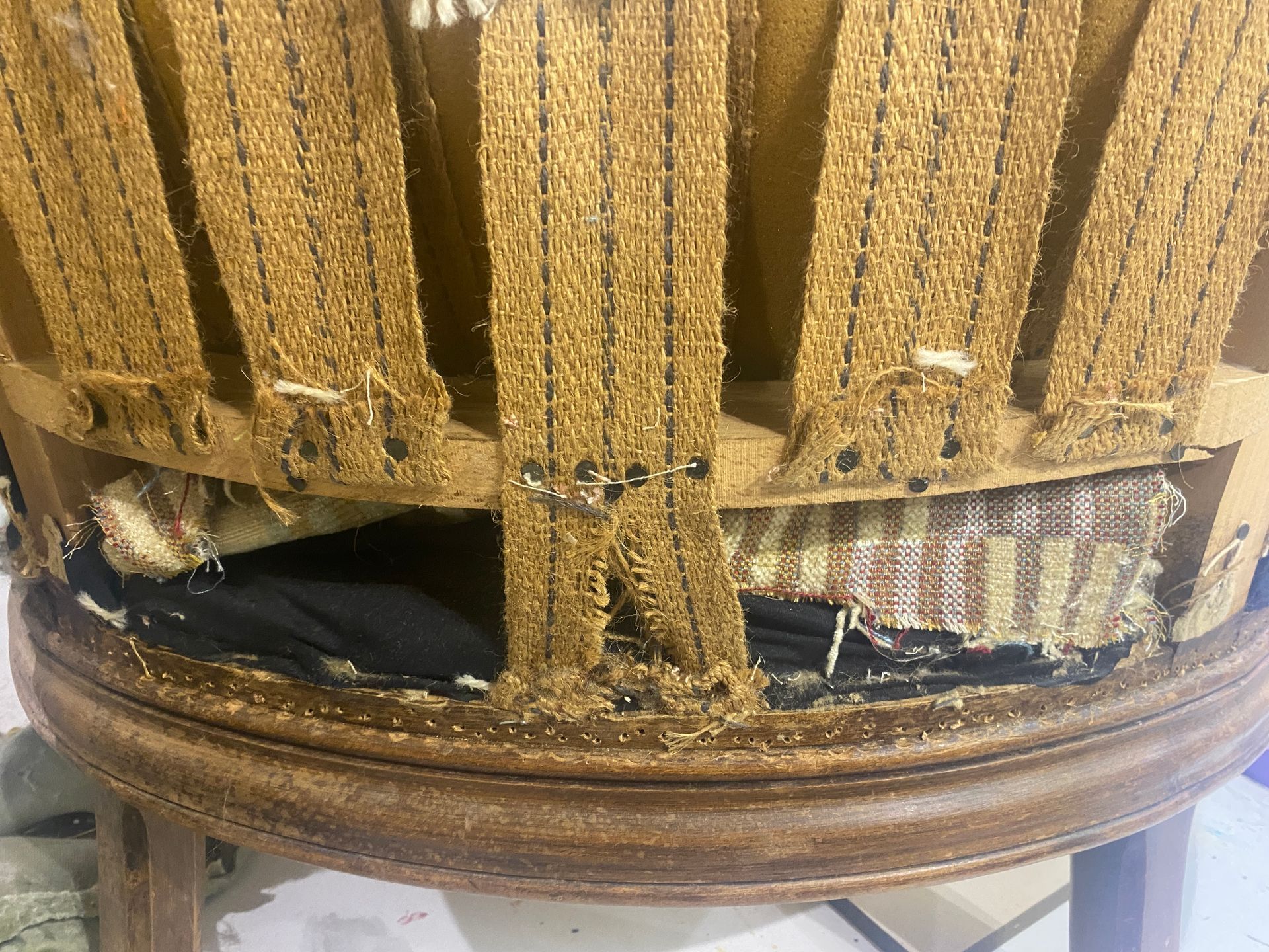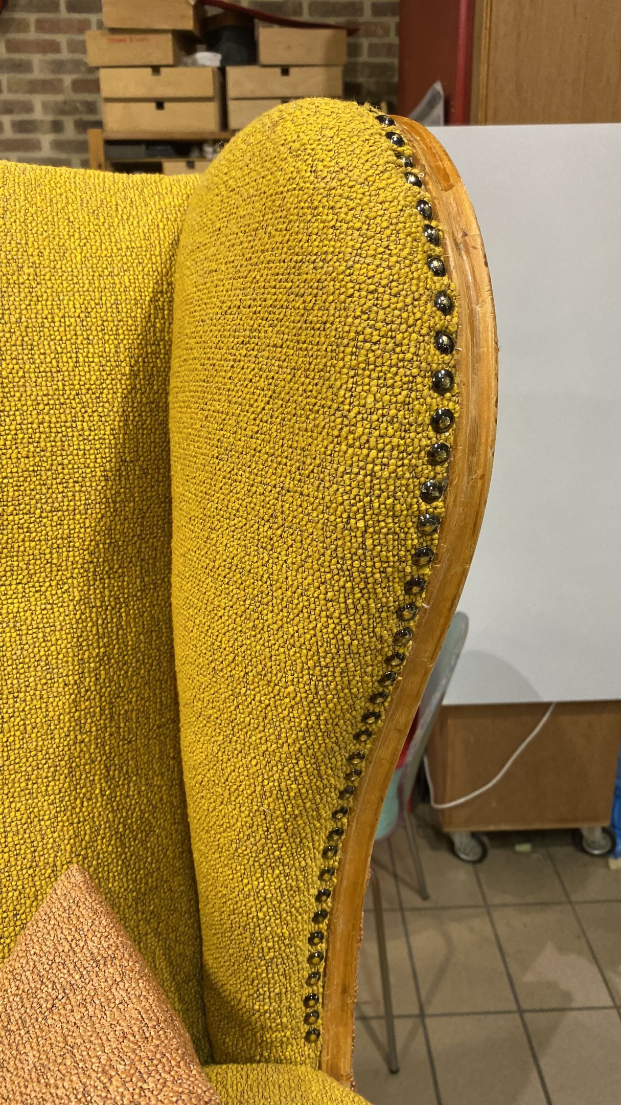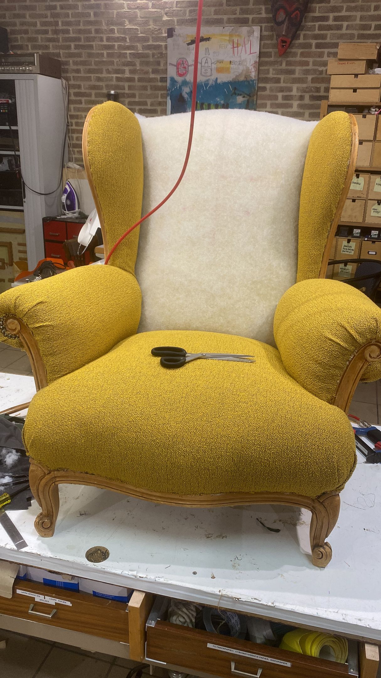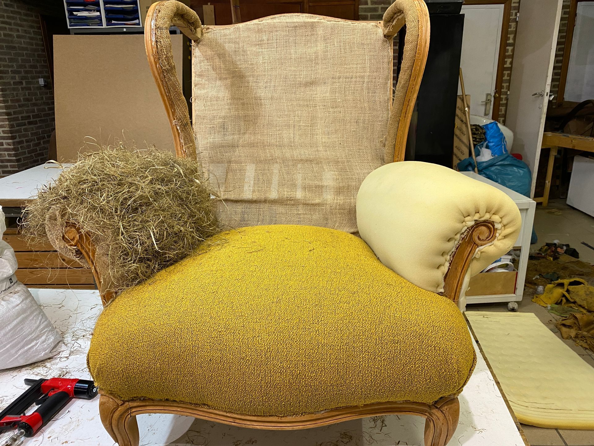 Hier volgen de logische stappen van een versleten geliefd stoeltje of sofa tot een prachtig gerestaureerde eye catcher: